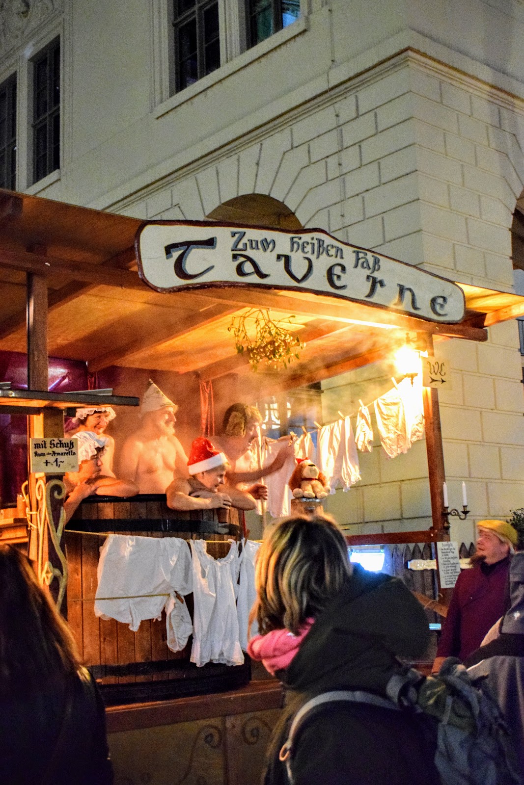 Sa ne distram cu un vin fiert si aromat, intr-un butoi cu apa fierbinte.